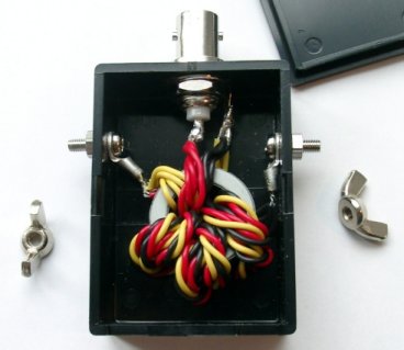 以下の写真の様なものを工作して,ロッドアンテナを先端に取り付けられるようにした