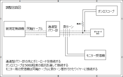 ② 無変調状態で送信し、波形がきれいな状態の最高出力を見つける